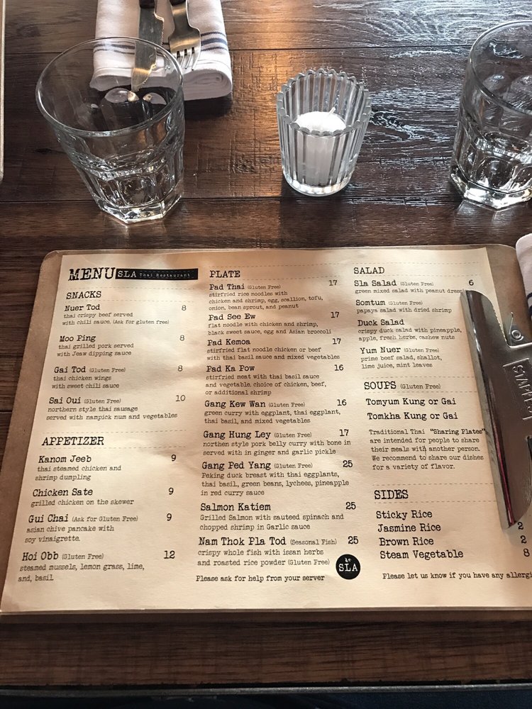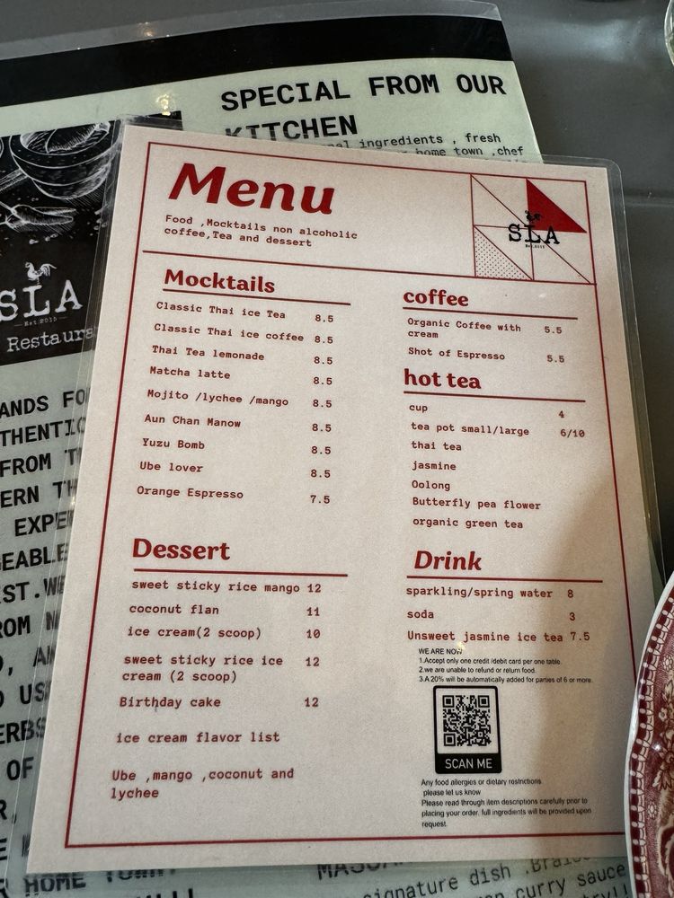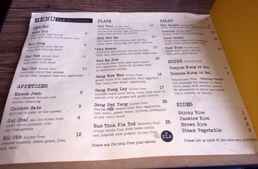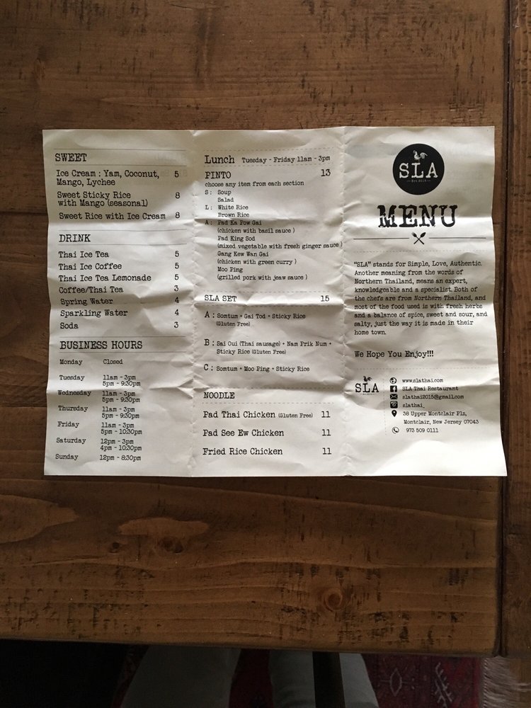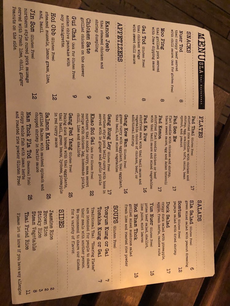 Introducing the menu at Sla Thai Restaurant in Montclair, NJ unveils a range of authentic Thai dishes catering to various preferences. From appetizers like the flavorful Chicken Sate and unique TOD MAN PLA THAI fish cakes to salads such as the refreshing SLA SALAD and Yum Nuer, each dish showcases a balance of traditional flavors. The menu also boasts a selection of sides like Sticky Rice and Steam Broccoli, providing options to complement your main course. Customer reviews praise the consistent quality and cozy ambiance of the restaurant, making it a go-to spot for Thai cuisine enthusiasts. With BYOB policy and friendly service, Sla Thai Restaurant offers a delightful dining experience for those seeking delicious, high-quality Thai dishes in a welcoming atmosphere.